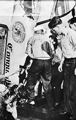 While Francisco Sarabia was taking off with a full fuel load for the return flight to Mexico from Bolling Airfield in Washington D.C., and in full view of his family, his engine failed due to an oily rag having been sucked into the carburettor intake, and he plummeted into the Potomac River, where he was trapped by the collapsed cockpit structure and died before his aircraft could be extricated from the mud of the river bed.[13] The wreckage of his aircraft was recovered and brought back to Mérida, Yucatán where it was placed in a museum.[14] A Mexican postage stamp was issued in his honor in 2000, featuring a picture of Sarabia and the Conquistador del Cielo[15]