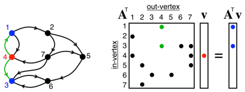 Graph algorithms have long taken advantage of the idea that a graph can be represented as a matrix, and graph operations can be performed as linear transformations and other linear algebraic operations on sparse matrices.[6]: xxv–xxvi For example, matrix-vector multiplication can be used to perform a step in a breadth-first search.[6]: 32–33