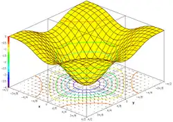 Plot of the graph of also showing its gradient projected on the bottom plane.