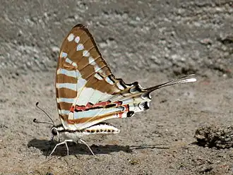Graphium nomius, the spot swordtail,[1][2] is a butterfly found in South and Southeast Asia that belongs to the swallowtail family. The species was first described by Eugenius Johann Christoph Esper in 1793.[1][2] One of the grandest sights is a host of spot swordtails mud-puddling or swarming around a flowering forest tree.