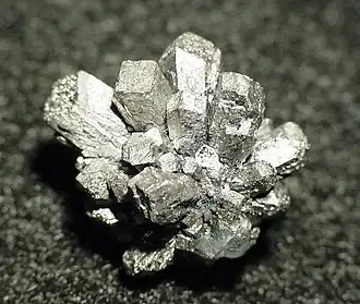 Gratonite is a lead-arsenic sulfosalt mineral, with the chemical composition Pb9As4S15. It is considered a low-temperature dimorph of jordanite. Gratonite was discovered in 1939 at the Excelsior Mine, Cerro de Pasco, Peru. [2] It is named in honor of geologist L. C. Graton (1880–1970), who had a long-standing association with the Cerro de Pasco mines. The other location where it is found is the Rio Tinto mine, Minas de Riotinto (Huelva), Spain. The crystals are very similar to those from Cerro de Pasco.[3]