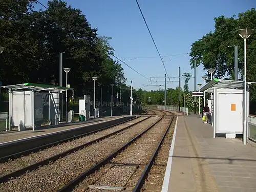 Gravel Hill tram stop is a light rail stop serving Addington, in the London Borough of Croydon in the southern suburbs of London. It is the main destination for tourists visiting the historic site of Addington Palace. It is also used by students who attend John Ruskin College and is the nearest stop for Forestdale.