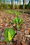 - Wetland Plants - obligate (Alisma subcordatum, Bidens cernua, Brasenia schreberi, Chelone glabra, Cicuta maculata, Gentianopsis crinita, Juncus effusus, Leersia oryzoides, Ludwigia palustris, Lycopus americanus, Micranthes pensylvanica, Myosotis scorpioides, Persicaria hydropiper, Persicaria sagittata, Potamogeton sp., Sagittaria latifolia, Symplocarpus foetidus, Taxodium distichum, Typha latifolia; and facultative (Amelanchier arborea, Arisaema triphyllum, Betula alleghaniensis, Bidens comosa, Boehmeria cylindrica, Carex sp., Carpinus caroliniana, Echinocystis lobata, Eleocharis sp., Eupatorium perfoliatum, Eutrochium maculatum, Hamamelis virginiana, Impatiens capensis, Larix laricina, Lindera benzoin, Onoclea sensibilis, Osmundastrum cinnamomeum, Osmunda claytoniana, Ranunculus sp., Pilea pumila, Sambucus canadensis, Smilax herbacea, Thuja occidentalis, Toxicodendron radicans, Veratrum viride, and Zizia aurea).