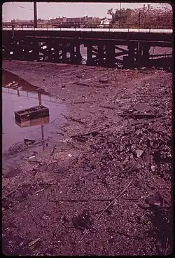 Oil-soaked 'Mud Lines Industrial Canal' in Gravesend Bay, 1973. Photo by Arthur Tress.