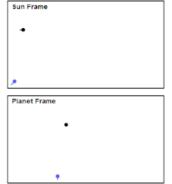 Translating this analogy into space: in the planet reference frame, the spaceship has a vertical velocity of v relative to the planet. After the slingshot occurs the spaceship is leaving on a course 90 degrees to that which it arrived on. It will still have a velocity of v, but in the horizontal direction.[2] In the Sun reference frame, the planet has a horizontal velocity of v, and by using the Pythagorean Theorem, the spaceship initially has a total velocity of √2v. After the spaceship leaves the planet, it will have a velocity of v + v = 2v, gaining approximately 0.6v.[2]