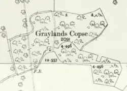 Notably, a medieval moated site exists 200 metres (656 ft) from Graylands Copse.[2]