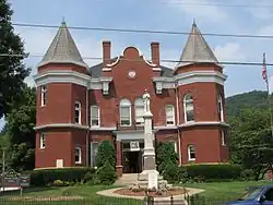 The county seat since shortly before the American Civil War has been Independence, Virginia, since the former county seat had been centrally located until Carroll County split off (and Oldtown now is a district within Grayson county).[5] The Old Grayson County Courthouse and Clerk's Office renovated circa 1834 still exists but is now located near what since 1953 is the independent city of Galax, Virginia. Even by 1890 the nearest railroad to Grayson county was nine miles from the county line, a Norfolk and Western Railway stop called "Rural Retreat." Textile and then furniture factories arrived in Galax (which was planned as a town near the old village of Blair on a plateau beginning in 1903 and renamed after a plant harvested from the surrounding mountains). Also, the New River was dammed at Fries to power a cotton mill, which also led to more direct service by the Norfolk and Western to Troutdale (which later faltered). Whitetop City and Fairwood also virtually disappeared during the Great Depression.[6]