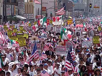 9. ^ LA Times"500,000 Pack Streets to Protest Immigration Bills" Archived May 4, 2007, at the Wayback Machine