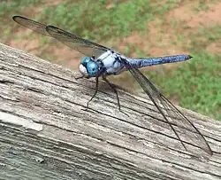 The great blue skimmer (Libellula vibrans) is a dragonfly of the skimmer family. With a total length of 50 to 63 millimetres (2.0 to 2.5 in), it is one of the largest skimmers. The immature forms of the skimmer are brown in color and mature forms are blue-hued. This species is found near lakes, ponds, and slow streams in the eastern United States[5] and rarely in southern Ontario.[6]