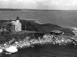 Great Captain Island Lighthouse is a lighthouse on Great Captain Island in the western Long Island Sound off the coast of Greenwich, Connecticut, United States. Built in 1829, the first lighthouse, made of stone, was of such poor construction that the walls were severely cracked a decade later. In 1868, a new granite dwelling with attached lantern was completed. The lighthouse is of the same design as lighthouses at Sheffield Island in Norwalk; Morgan Point in Noank; Old Field Point Light and Plum Island in New York; and Block Island North in Rhode Island. In 1890, a fog whistle was added, in 1905 a siren was installed. The lighthouse was deactivated in 1970 when a skeletal tower replaced it. The Town of Greenwich acquired the property in 1973 and had full-time caretakers on the site until the lighthouse became too dilapidated in 2003. A successful restoration effort was completed in 2009 and a non-navigational light was activated in 2012. In 2010, a memorial plaque was installed to "honor the 23 people who lived in Greenwich, or had a connection to the town", who died in the September 11, 2001 attacks. In 1991, the Great Captain Island Light was added to the National Register of Historic Places.