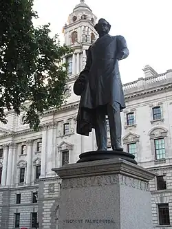 Historian F. S. L. Lyons characterised the initial response of the British government to the early, less severe phase of the famine as "prompt and relatively successful".[89] Confronted by widespread crop failure in November 1845, the Prime Minister, Sir Robert Peel, purchased £100,000 worth of maize and cornmeal secretly from America[90] with Baring Brothers initially acting as his agents. The government hoped that they would not "stifle private enterprise" and that their actions would not act as a disincentive to local relief efforts. Due to poor weather conditions, the first shipment did not arrive in Ireland until the beginning of February 1846.[91] The initial shipments were of unground dried kernels, but the few Irish mills in operation were not equipped for milling maize and a long and complicated milling process had to be adopted before the meal could be distributed.[92] In addition, before the cornmeal could be consumed, it had to be "very much" cooked again, or eating it could result in severe bowel complaints.[91] Due to its yellow colour, and initial unpopularity, it became known as "Peel's brimstone".[93]