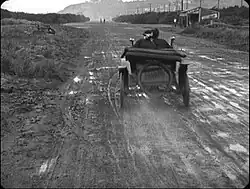In the early 1900s, as the automobile gained popularity, efforts were made to improve and widen the Great Highway as well as protect it from erosion. Its condition in 1915 is visible in a Charlie Chaplin film, A Jitney Elopement. City engineer Michael O'Shaughnessy’s Ocean Beach Esplanade was completed in 1928, along with a newly paved Great Highway in 1929. The concrete seawall survives to this day.[8]