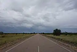 Great Northern Highway is the main north-south route between Perth and the northern areas of Western Australia. Covering a distance of 3,195 kilometres (1,985 mi),[1] it is the longest highway in Australia.[4] From Midland in Perth's north-east, the highway heads generally north-east through the Wheatbelt and Mid West to Newman, north-west to the coastal Pilbara town of Port Hedland, along the coastline to Broome, east to Halls Creek, and finally north to Wyndham, on the state's northern coastline. Sixty kilometres (37 mi) out from Wyndham, the highway intersects the start of Victoria Highway, which carries interstate traffic to the Northern Territory via Kununurra. Various road routes are allocated to sections of Great Northern Highway, which is mostly a National Highway route, and also forms part of Australia's Highway 1. It is signed as National Route 1 from Midland to Middle Swan, National Highway 95 and National Route 1 concurrently from Middle Swan to Muchea, National Highway 95 from Muchea to Mundabullangana, National Highway 1 from Mundabullangana to Victoria Highway, and State Route 155 from Victoria Highway to its northern terminus at Wyndham.[5] The vast majority of the highway is a two-lane single carriageway, although as of 2014 there are thirteen single-lane bridges and four single-lane floodways in the Kimberley.[5][6] The speed limit is 110 kilometres per hour (70 mph) except in and around built up areas.[1]