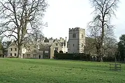 In the grounds of the Hall is St Michael's Church, Great Oakley, which was built of stone in the 13th century. The nave roof is built of Collyweston stone slate. Both the nave and the small tower, which houses three bells, were added to the church in the 16th and 17th centuries. The church register dates from 1718. Inside the church there are several monuments to the Brooke family, and the oak choir stalls are said to have come from the Cistercian abbey at Pipewell. The church is a grade II* listed building.[7]