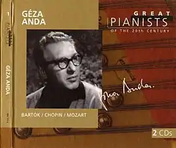 Included from Anda's catalogue are his performance of Mozart's Piano Concerto #21, popularly known as the theme of Elvira Madigan, his "idiomatic" performance of Bartók's Piano Concertos, and Chopin's Waltzes which were recorded near the end of Anda's life.[1]
