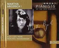 Great Pianists of the 20th Century – Martha Argerich is the second volume of the Great Pianists of the 20th Century box set and is the first of two volumes dedicated to her. The album features music by the composers Johann Sebastian Bach, Franz Liszt, Sergei Prokofiev, Sergei Rachmaninoff, and Maurice Ravel. The works were recorded between 1967 and 1982.