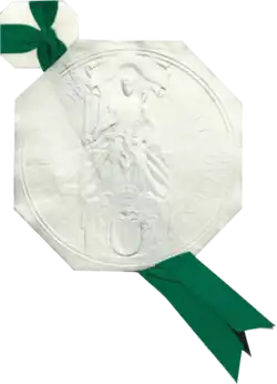 The passage of the Seals Act formally established the Great Seal of Canada as the symbol through which instruments are issued, representing the "supreme expression of the will of [the Canadian] state."[11][13] By authorizing its use by the King to ratify international agreements, the Act created a new official procedure that asserted and recognized Canada's equal political status within the British Empire.[13] The Act also effectively eliminated need to travel to London to obtain the imprint of the Great Seal of the Realm.[12]