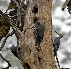 The great slaty woodpecker (Mulleripicus pulverulentus) is a species of bird in the family Picidae. It is found across the Indian Subcontinent and Southeast Asia. A unique and basically unmistakable bird, it is the largest known species of woodpecker.