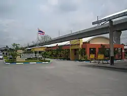 The Maeklong Railway (also known as the Mae Klong Railway) is a 1,000 mm (3 ft 3+38 in) (Metre gauge) railway that runs for nearly 67 kilometres (42 mi)[1] between Wongwian Yai, Bangkok, and Samut Songkhram in Central Thailand. The line consist of two sections: the eastern Mahachai Line, which runs between Wongwian Yai and Mahachai; and the Ban Laem Line, which runs between Ban Laem and Maeklong. The two stretches are separated by the Tha Chin River at Samut Sakhon. The only way to connect between the stations on the opposite sides of the river is by boat.[2]