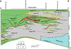 - ^ a b Law, B.E. (1988). "Geologic framework and hydrocarbon plays in the southwestern Wyoming Basins Province". Open-File Report. doi:10.3133/ofr88450f. ISSN 2331-1258.