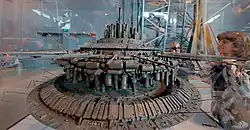 In science-fiction model design, greebles are used to imply mechanical function without necessarily having any real purpose. They may also serve to create an illusion of scale.[5] In the production of Star Wars, many ship models began as simple shapes that were given visual complexity by attaching greebles taken from commercial model kits.[3] Greebling is a common aspect of Lego model design.[6][7]