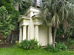 Greeks were the last among European merchants to come to Bangladesh. They came to Bangladesh around the 18th century. They constructed a memorial in Dhaka. It was constructed for the memory of the Greek merchants who died while in Dhaka. The Greek memorial was built around AD 1900, and appears like an ancient Greek temple; it is a small yellow structure on land owned by the Greek Community, which flourished in Dhaka in the 19th century. It is inside the Teacher-Student Centre (TSC) of the University of Dhaka and stands alone on the main Shahbagh Avenue and faces Ramna Race Course. To its southern side is the Atomic Research Centre and to its north a student's centre. It is considered to be the only such structure extant outside Greece.[1]
