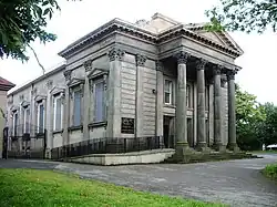 The Greek Orthodox Church of the Annunciation, Manchester (Greek: Ιερός Ναός Ευαγγελισμού της Θεοτόκου) is a Greek Orthodox church in Salford, Greater Manchester. Completed in 1861 in a classical architectural style,[1] it is the oldest purpose-built Greek Orthodox church in England[4][5][6] and since 1980, a grade II listed building for its “special architectural or historic interest”.[2] As of 2017 the church provides liturgies on Sundays and acts as a hub for a community of an estimated 2,500 Greek diaspora,[7] particularly Greek Cypriots,[6] British Cypriots[8] and Greek students in Manchester.[7][9][10][11][12][13]