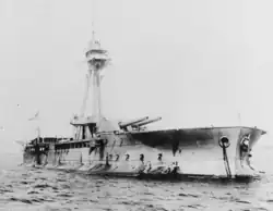 The initial design called for a ship 458 ft (140 m) long with a beam of 72 ft (22 m), a draft of 24 ft (7.3 m), and a displacement of 13,500 long tons (13,700 t). The ship was designed with 2-shaft turbines rated at 26,000 shp for a top speed of 21 knots (39 km/h; 24 mph). The armament was to be six 14-inch (356 mm) guns in twin turrets all on the centerline with one amidships, eight 6 in (152 mm), eight 3 in (76 mm), and four 37 mm (1.5 in) guns, and two 45 cm (18 in) torpedo tubes.[16]