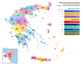 Parliamentary elections were held in Greece on 5 March 1950.[1] The People's Party emerged as the largest party in Parliament, winning 62 of the 250 seats.[2]