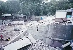 Greenbelt underwent enhancements, starting with the construction of the indoor Center Mall from 1989 to 1994 and the renovation in 1994 that added wheelchair ramps. The original wing was subsequently renamed Greenbelt 1 in 2000 as part of an expansion project, which involved renovation until 2001, redevelopment of the Ayala Museum from 2001 to 2004, expansion of the park, and the addition of Paseo Steel Parking and new wings such as Greenbelt 2 and 3 (ground broke in 2000 and opened in 2002), Greenbelt 4 (ground broke in 2002 and opened in 2004 on the old site of Ayala Museum), and Greenbelt 5 (opened in 2007).[9][10] Demolition of surrounding structures, including United Supermarket, Garden Square Building, Shop & Lift Plaza,[11] Greenbelt Arcade, and Greenbelt 1's service driveways occurred until 2006, mostly due to expired contracts, making way for these developments.[5][9][12]