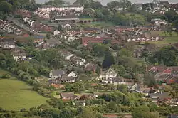 The town has two distinct areas, known locally as Upper Greenisland and Lower Greenisland after the upper Station Road and lower Station Road around which two parts are respectively located. Upper Greenisland stretches from Upper Road (B90) to the railway station at the bottom of Upper Station Road, includes Greenisland Primary School and features predominantly middle-class demographics and housing. Lower Greenisland runs from the railway station, down Station Road and ends at Shore Road (part of the A2 road). It features a large, predominantly Protestant working-class housing estate built during the 1950s and 1960s[4] and includes Greenisland Library, Greenisland Community Centre, a number of churches, a small shopping parade at Glassillan Court and Silverstream Primary School. The village in its entirety stretches from the foot of the hill to the shore of Belfast Lough.