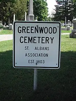Greenwood Cemetery is a burial ground located in St. Albans (city), Vermont. The entrance is on South Main Street (U.S. Route 7), between St. Albans State Highway and Upper Gilman Street. The facility has been active since 1802, was formally established in 1803, and contains more than 5,000 graves. It is owned and operated by the St. Albans Cemetery Association.[1]