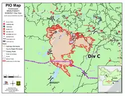 The fire prompted the evacuation of more than 290 homes and resulted in the temporary closure of the entire nearby Boundary Waters Canoe Area Wilderness for the first time since the 1970s.[7] The closure began August 20 for a period of one week and was extended another week to end September 3.[8] All area and road closures were lifted by early October.[6]
