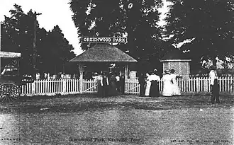 Greenwood Park was the first urban park and recreation area established for African Americans in Nashville, Tennessee.[1][2] It was located on a 40-acre (16 ha) plot approximately 3 miles (4.8 km) east-southeast of downtown along Spence Lane between Lebanon Pike and Elm Hill Pike, across from Greenwood Cemetery.[1][3] The park was founded in 1905 by Preston Taylor, a wealthy minister and former slave.[1][4] It remained open until 1949.[4]