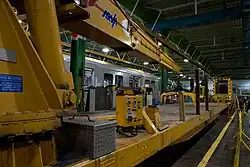 The Greenwood Yard also performed heavy maintenance on the S series ICTS cars from Line 3 Scarborough that could not be completed at the McCowan Yard. As the gauge and technology differed between lines 2 and 3, ICTS cars had to be transported by truck to Greenwood for major maintenance work.[4]