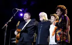In 2010, Lake and Emerson completed an acoustic world tour, performing ELP songs. The tour got off to a bad start following a backstage altercation between the two, but "we completed the tour and it was very happy. We actually ended up enjoying ourselves".[34] That July, Lake joined Emerson and Palmer for a one-off gig from Emerson, Lake & Palmer at the High Voltage Festival in Victoria Park, London, to commemorate the band's fortieth anniversary.[51] The concert was released on CD, DVD, and Blu-ray as High Voltage.[52] It was the final performance by the group. Lake wished to continue touring, but claimed his bandmates "didn't want to", thus ending such plans.[34]