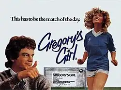 Gregory's Girl is a 1980 Scottish coming-of-age romantic comedy film[5] written and directed by Bill Forsyth and starring John Gordon Sinclair, Dee Hepburn and Clare Grogan. The film is set in and around a state secondary school in the Abronhill district of Cumbernauld.