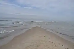 Grenen marks the junction between the strait of Skagerrak (part of the North Sea) and the Kattegat sea. The turbulent colliding waves have created a 4-km long curved sandbar above and below the waves stretching east. The reef is still active and has grown about 1 km northeast towards Sweden over the last century, resulting in a mean annual growth rate of about 10 m. Because of the very strong currents, swimming there can be fatal and is prohibited in the waters around Grenen.