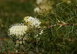This grevillea regenerates from seed and is similar to G. intricata, which does not have glaucous branchlets.[3]
