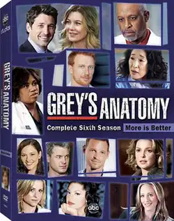 ![]() DVD cover art for the sixth season of Grey's Anatomy | |