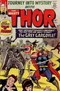 ![]() The Grey Gargoyle battles Thor on the cover of Journey into Mystery #107 (Aug. 1964). Art by Jack Kirby. | |