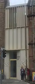 The centre soon found its buildings were not fully adequate for the growing roster of activities they hosted.[25] In 2017, the centre held a competition for designs to refurbish the buildings and improve accessibility. Konishi Gaffney Architects won, beating Hoskins Architects, Zone Architects, and Morgan McDonnell.[26] Work took place between November 2019 and March 2022 and cost £1.7m.[27][28] Konishi Gaffney's initial plans involved the removal of tracery from the west window and the cutting down of its margin to street level to create a two-storey glazed frontage. An application for planning permission was submitted in May 2018 and withdrawn in July 2018.[29] Revised plans, which mostly preserved the west frontage, were submitted in September the same year and approved that December.[30]