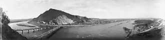 A combination of high intensity rainfall, high topographic relief and short steep rivers often leads to rapid flooding of low-lying land across the West Coast.[13] Since its founding Greymouth has experienced two dozen floods by the Grey River, with many of the most significant being assigned names: for example, the Great Flood (1872), the Jubilee Flood (1887), the Big Flood (1905), The Biggest Since 1887 (1936), The Biggest Since 1936 (1977), The Big One (May 1988) and The Biggest (September 1988).[14] After the two floods in 1988 the mayor of Greymouth, Barry Dallas, organised the construction of a flood protection wall. Rising 2 m above the level of the railway embankment and riverside wharf, it was completed in September 1990 at a cost of NZ$4m. Since its completion Greymouth has not suffered a significant flood, although the river has come close to the top of the flood wall several times.[15]