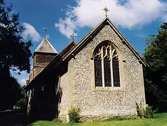 Greywell's church, dedicated to St Mary the Virgin, is an ancient structure of flint with stone quoins and dressings in the Norman and early English styles. It consists of a chancel, nave, porch and tower surmounted by wooden belfry containing four bells.
