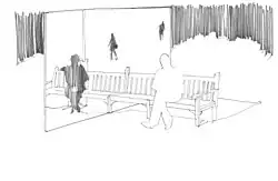 Worldbench (2005) is an installation that uses a park bench to link up locations across the world. It takes an ordinary wooden bench and places it up against a screen, attached to a wall in the school's playground. Reflected on the screen is the mirror image of the bench, disappearing into the distance; but whilst one side of the bench is in South London for example, the other could be in the north of England, or the other side of the world. Four Worldbenches have been created, with many more to be installed around the globe.