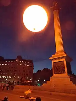 For their most recent artwork, greyworld created a large spherical self illuminated "Sun" which was installed in Trafalgar Square, London for one day only. Weighing 2.5 tons, and using 210,000 watts of power, the Sun illuminated the Square for three hours after sunset.