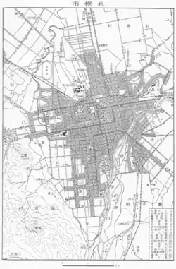 Grid blocks in Sapporo circa 1930, subdivisions are named after the numbered roads