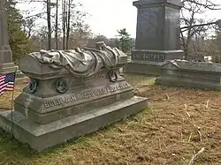 He was originally interred in Cedar Grove Cemetery in New London, Connecticut and was re-interred in the family plot in Cedar Hill Cemetery in Hartford, Connecticut on May 20, 1875. The sarcophagus is carved with his ornamental sword, cap and belt, inscribed with the battles he fought in and the words "Brave, just, generous and pure, without fear and reproach".[6][7]