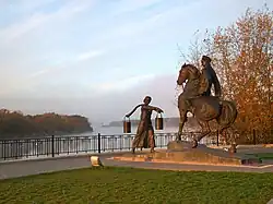 Grigory and Aksinya (Russian: Григорий и Аксинья) is a sculpture composition of principal characters of the epic novel And Quiet Flows the Don in Vyoshenskaya, Rostov oblast, Russia. It was designed by sculptor N. Mozhaev.