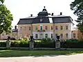 The first manor was finished in 1700, then rebuilt between 1749 and 1756 by architect Carl Hårleman for Claes Grill (I). After his death, the manor passed to his son Adolf Ulric. He was an avid naturalist and during his residence, he filled it with art and specimens of mounted animals, minerals, fossils and plants.[98] Adolph Ulric had a separate house built for his collection in 1786. He also started the construction of an English garden at Söderfors by the river Dalälven. Gustaf af Sillén completed the park, which is one of the main features in Söderfors.[100] As of 2014, the manor is a hotel and conference venue. On 20 December 1985, most of the ironworks and the surrounding area of Söderfors, a total of 91 buildings, became listed buildings, making it one of the largest listed sites in Sweden.[101] [102]